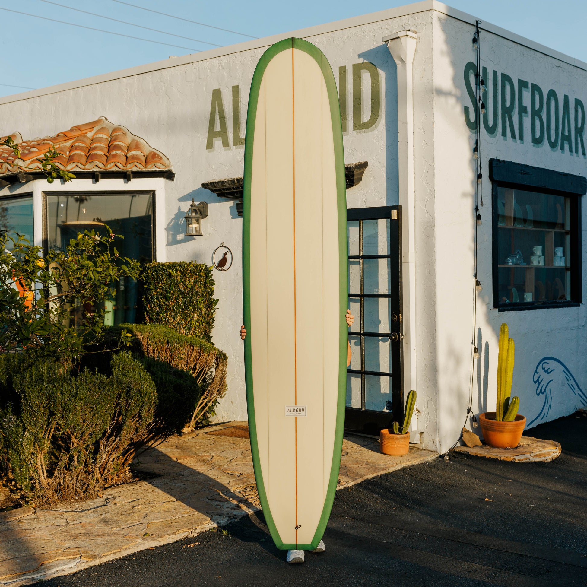 Every Almond board begins as a blank and ends as a hand-shaped piece of California craftsmanship. Each curve, foil, and rail line is refined through years of shaping and feedback from real surfers. We build boards that hold up for decades and ride beautifully in everyday conditions.
