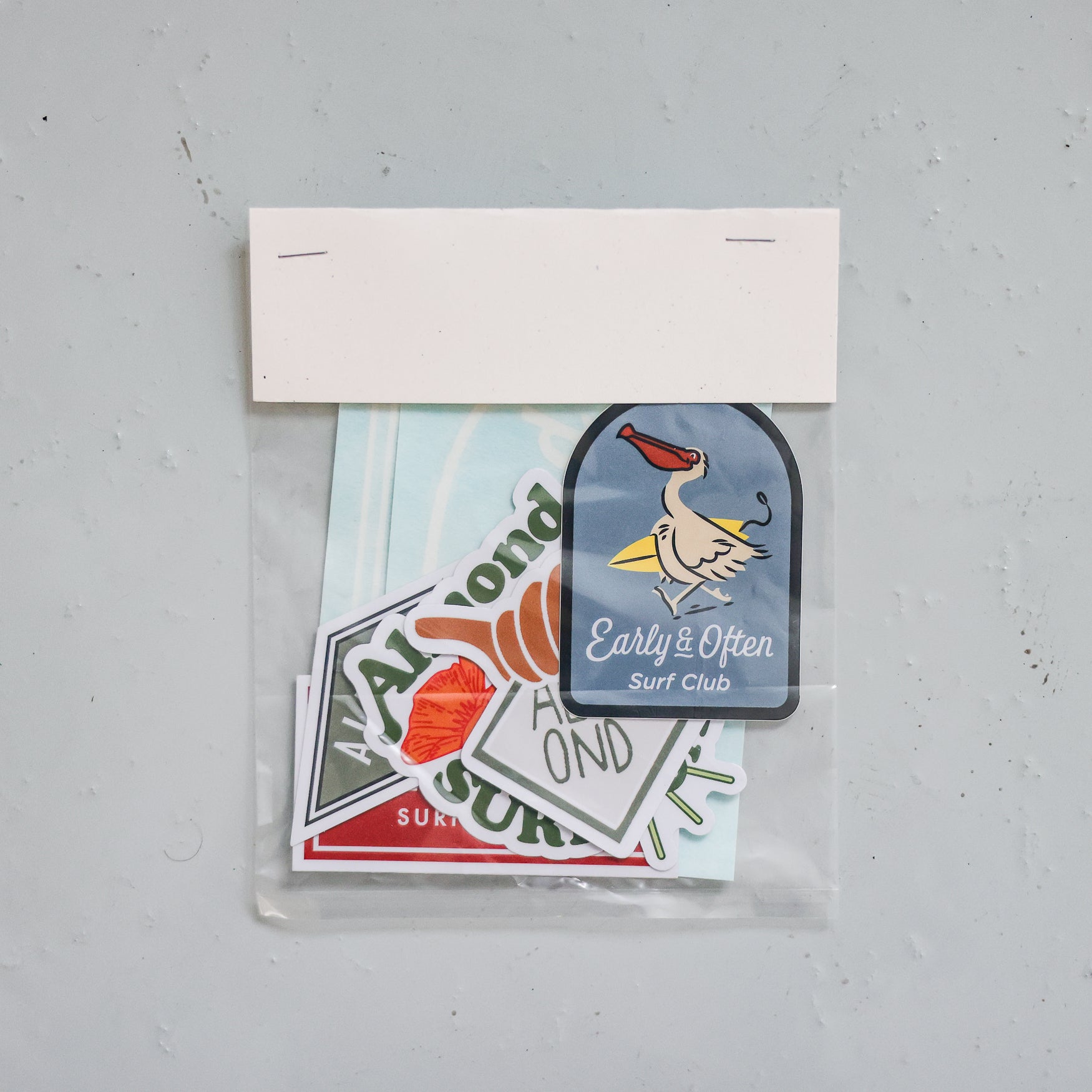 Each pack contains an assortment of 6-7 Almond stickers and decals.