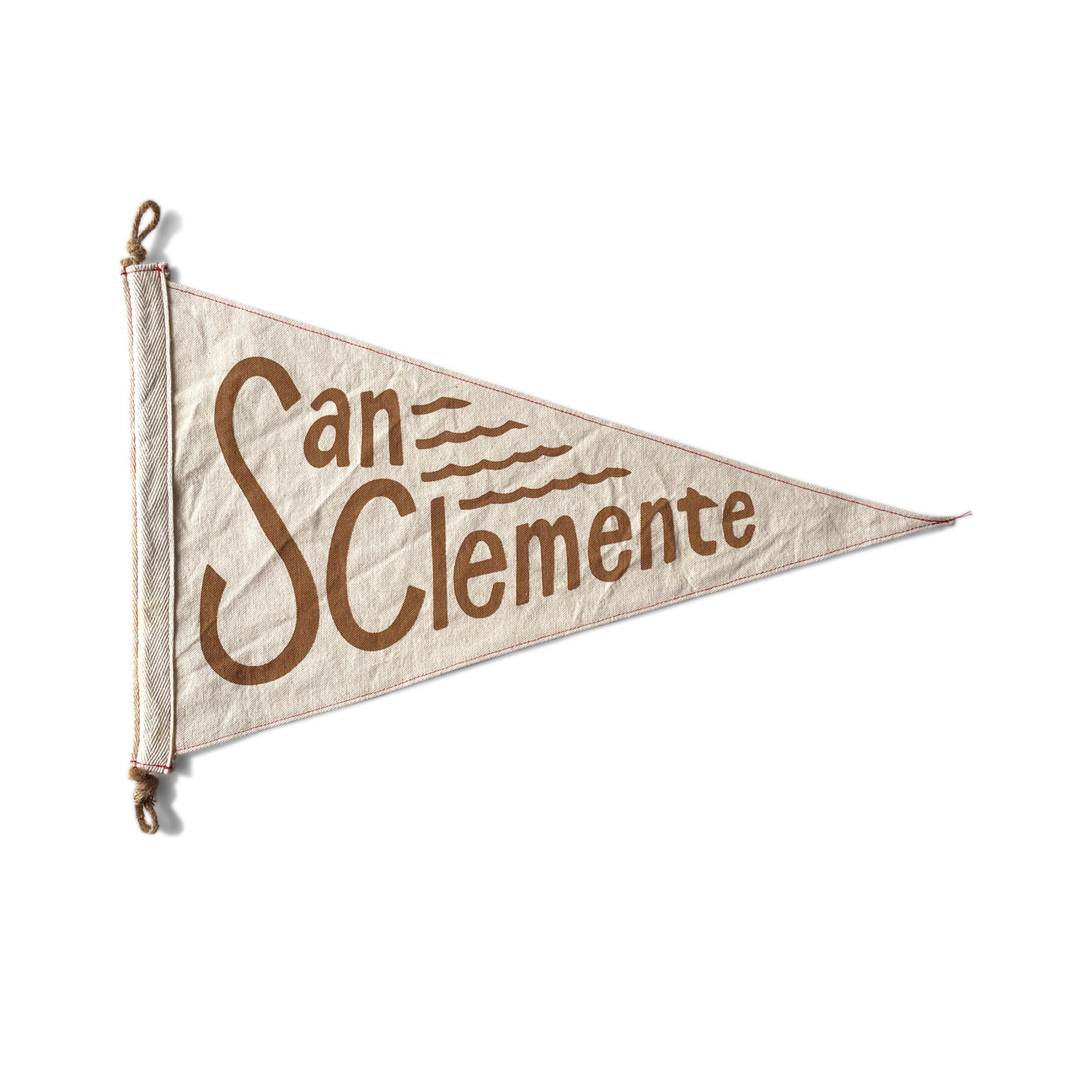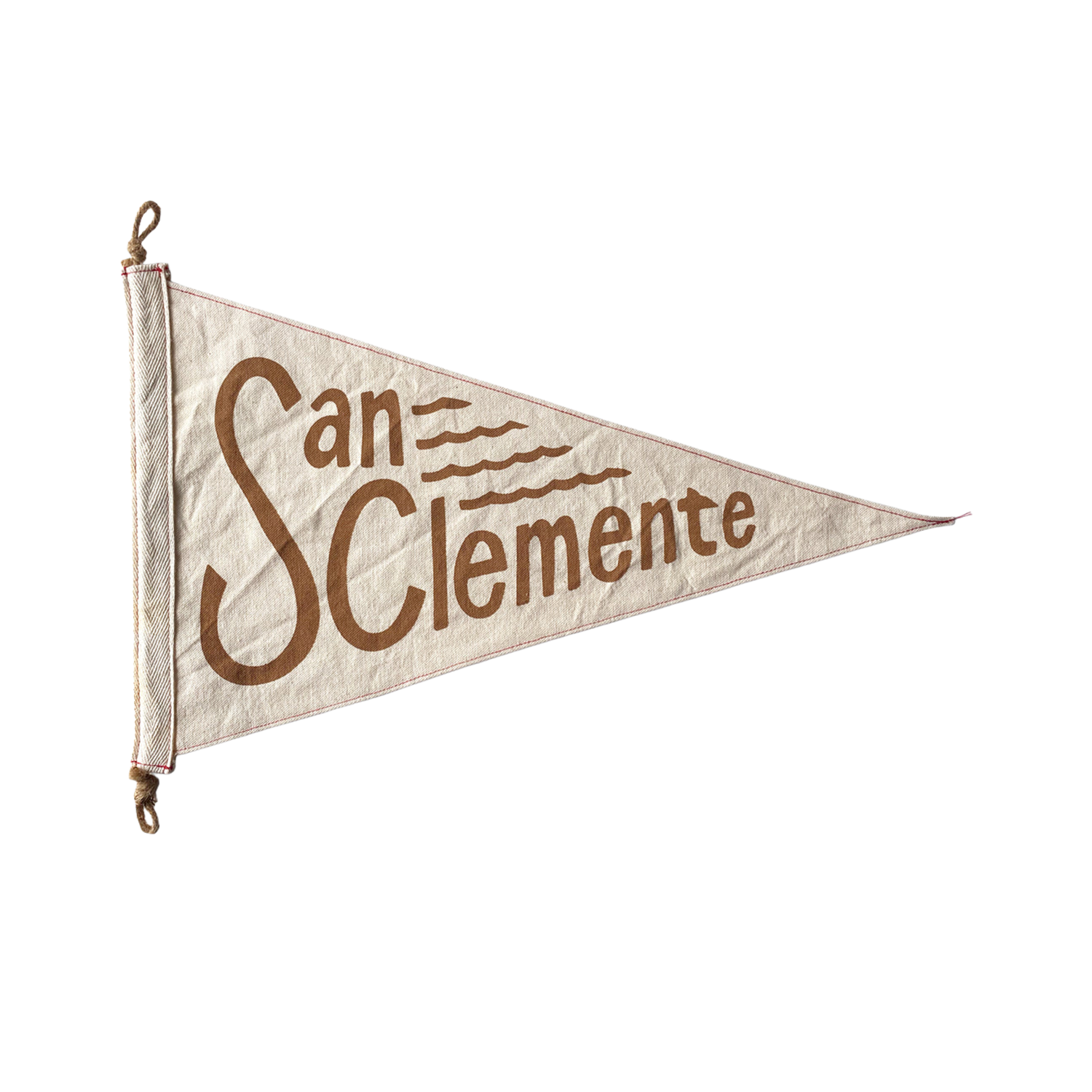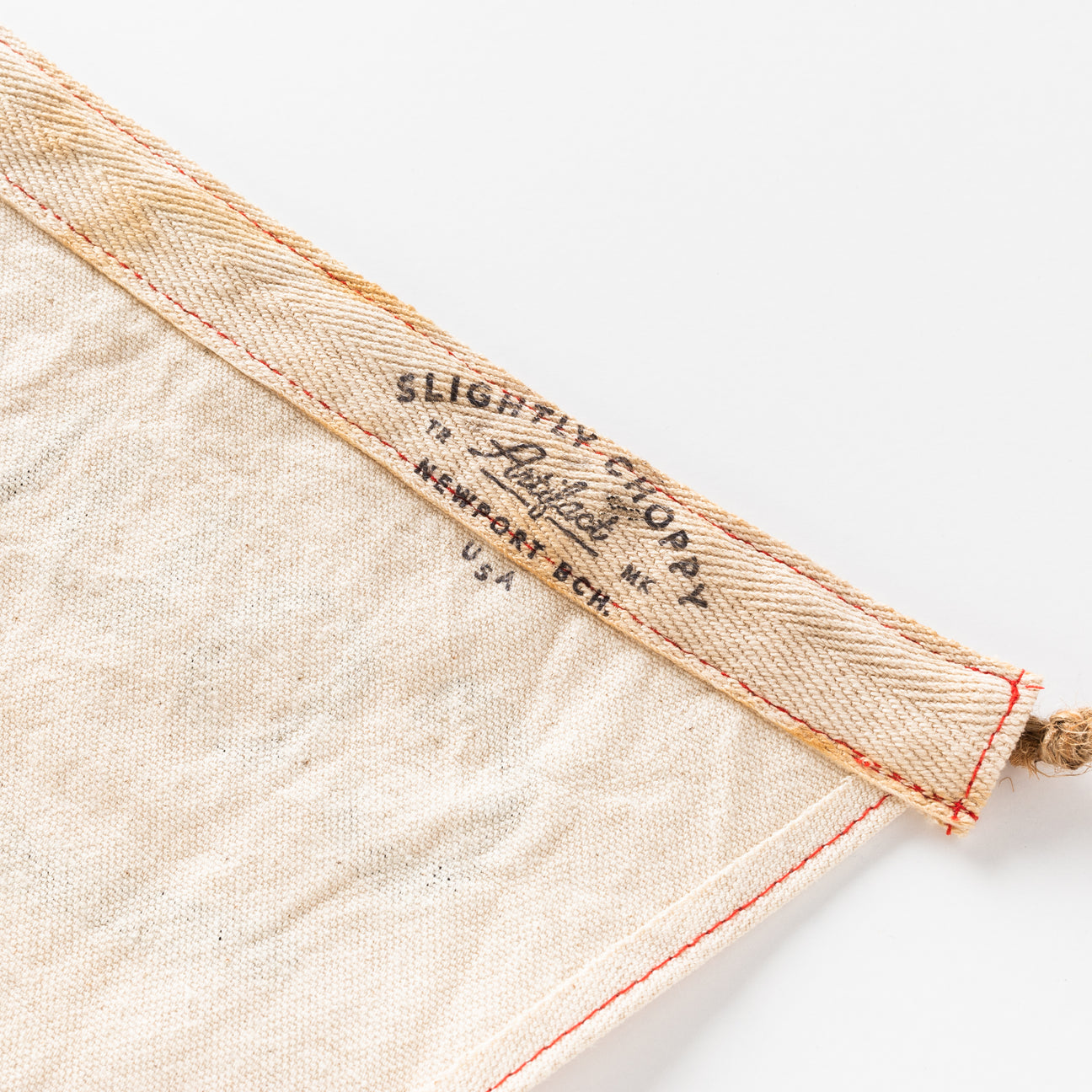 This hand-made flag uses a natural canvas with hand-screened rust brown type. Each flag is topped with a natural twine + twill tape and stamped with Slightly Choppy branding.